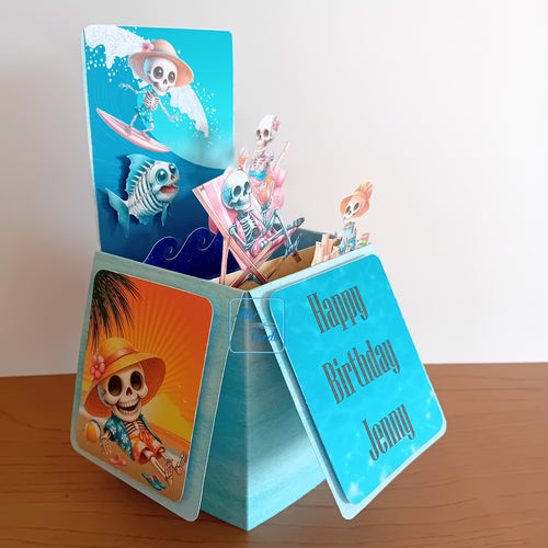 Summer skeleton pop up box card
