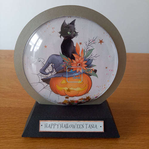 Personalised witch's cat snowglobe