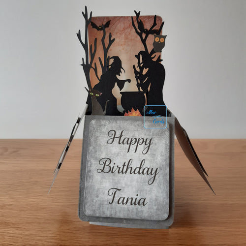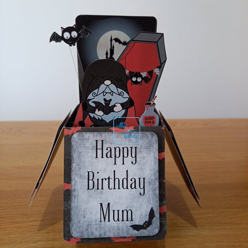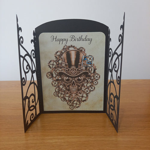 Gothic Exploding Box Card with Skulls & Celebration Cake