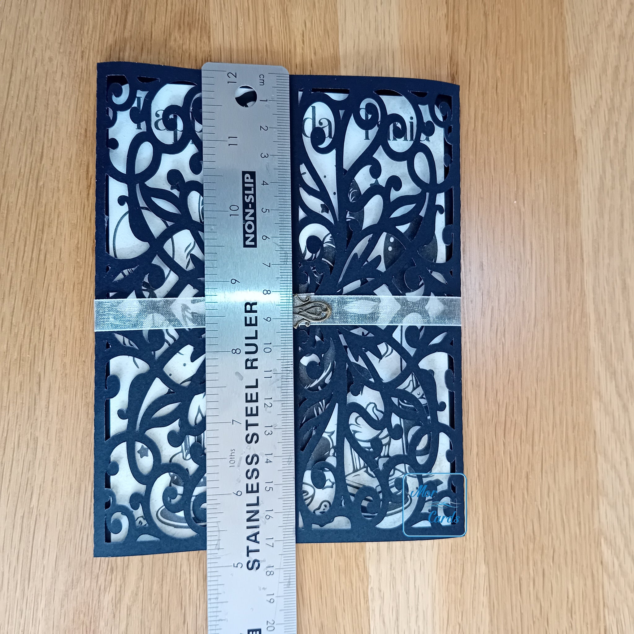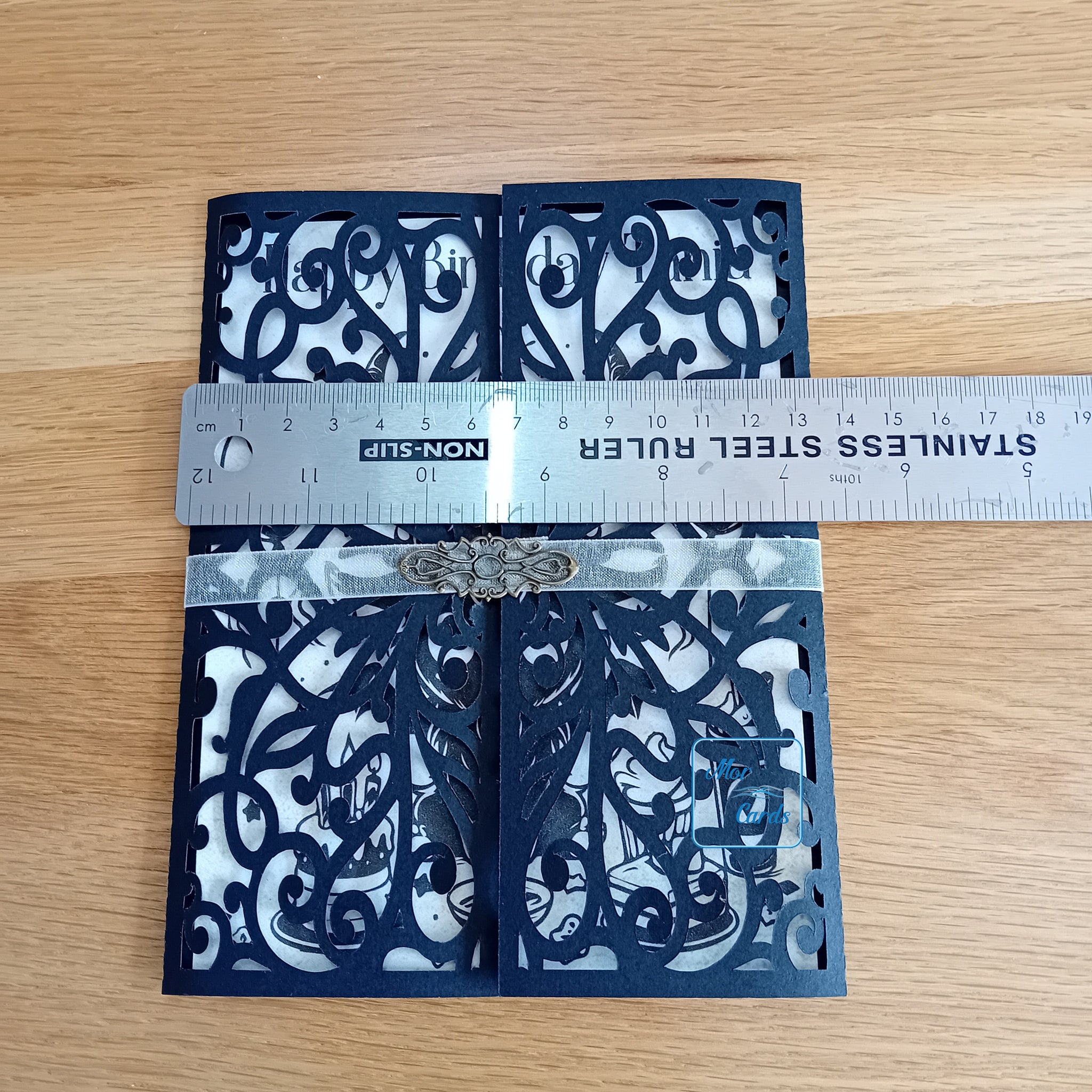When closed, the card is approx 17 x 13cm in size and approx 17 x 26 cm when opened out fully.