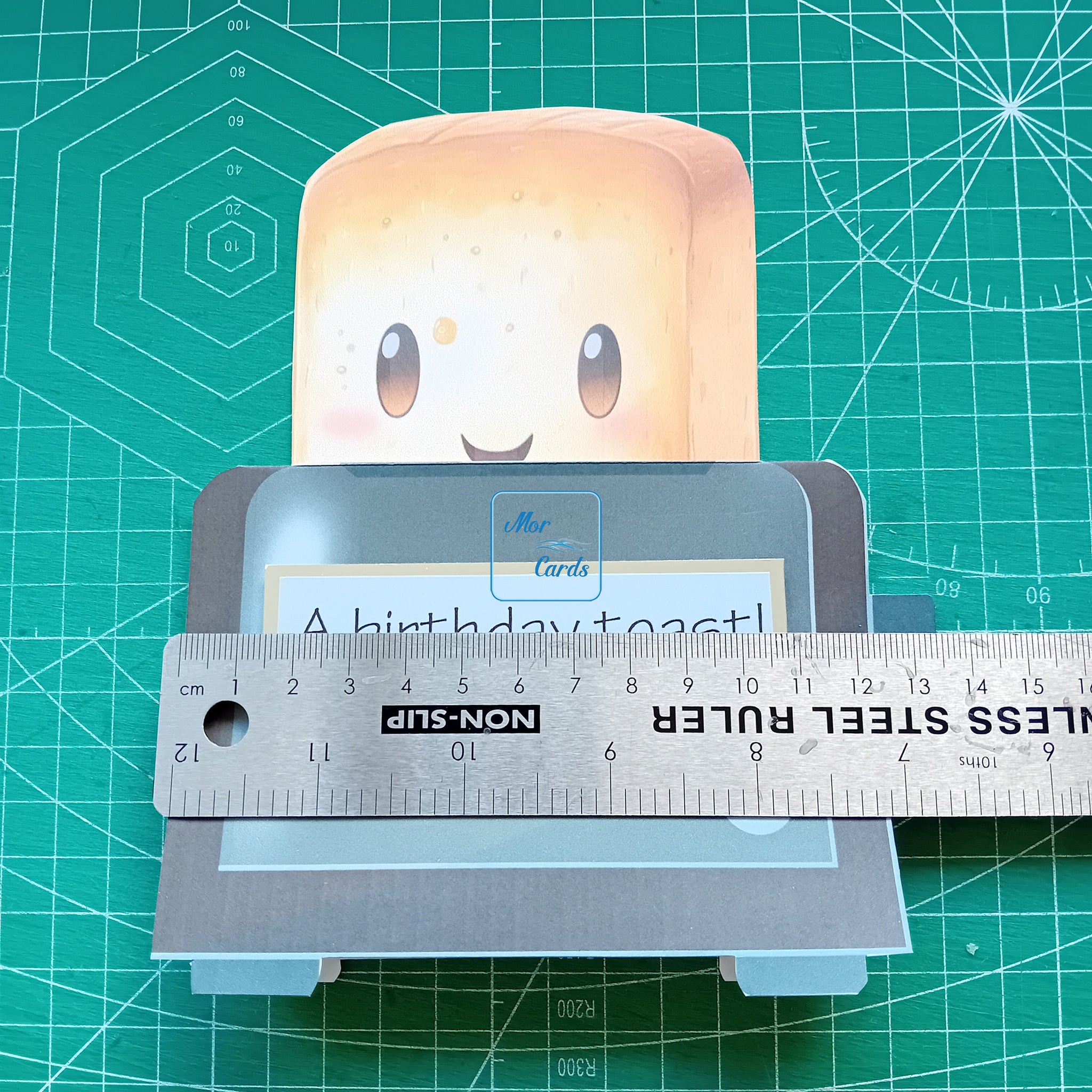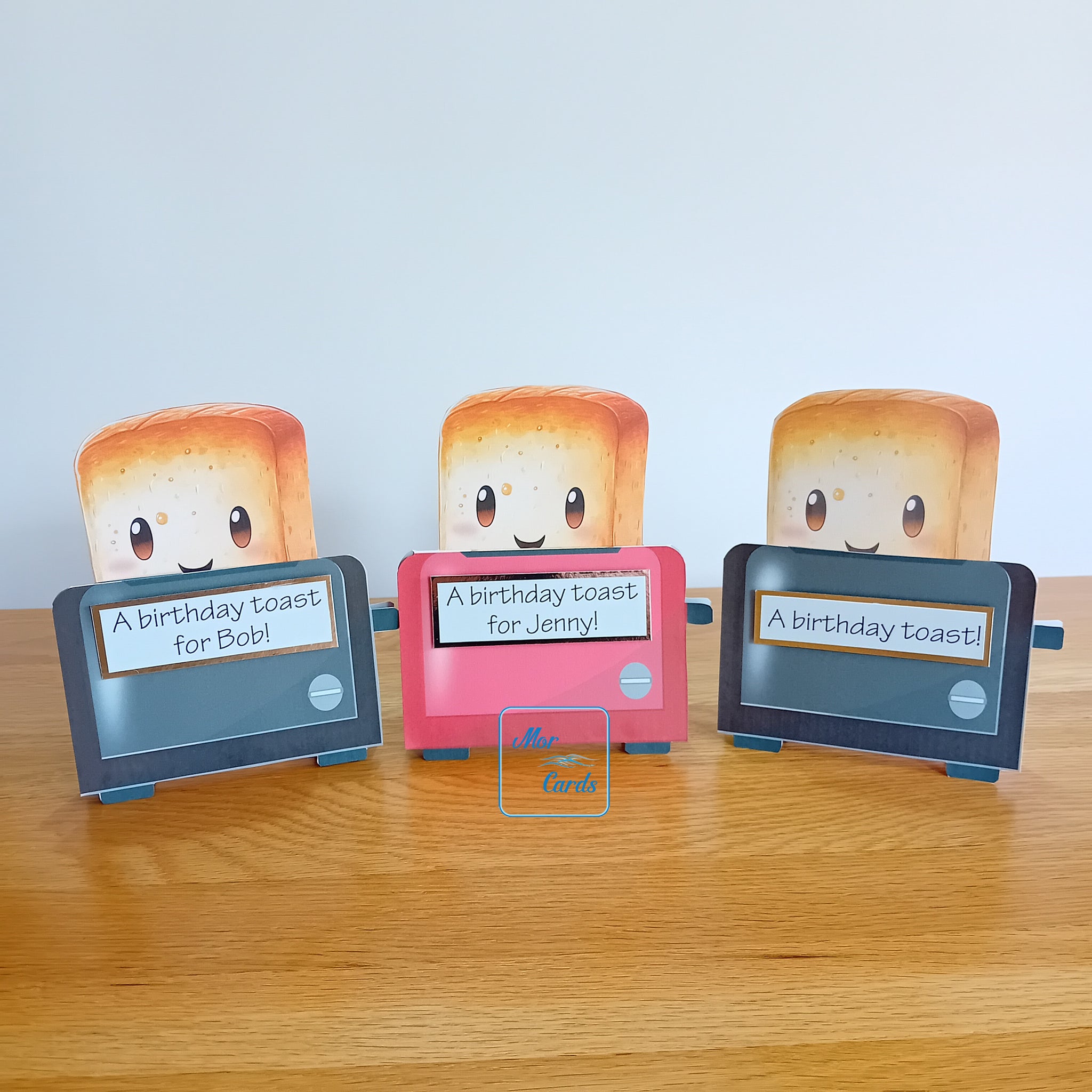 This is an unusual card where the birthday / wedding or celebration toast comes out of the toaster and you can write your own greeting on the note he's holding. It's ideal for any occasion including congratulations, birthday or even a party invitation.
