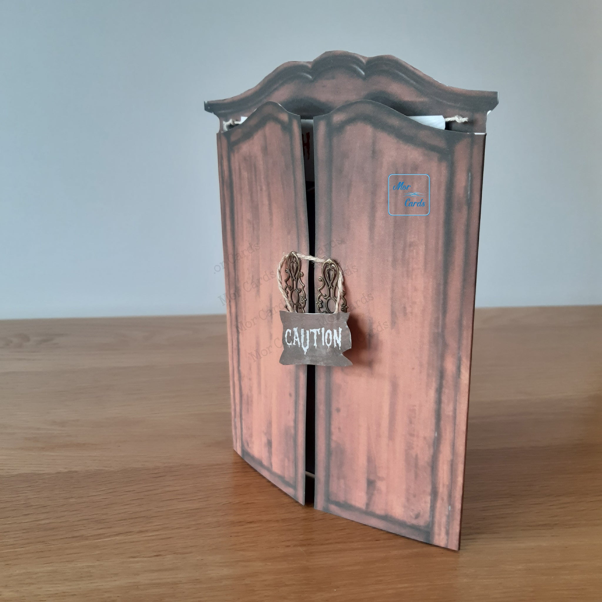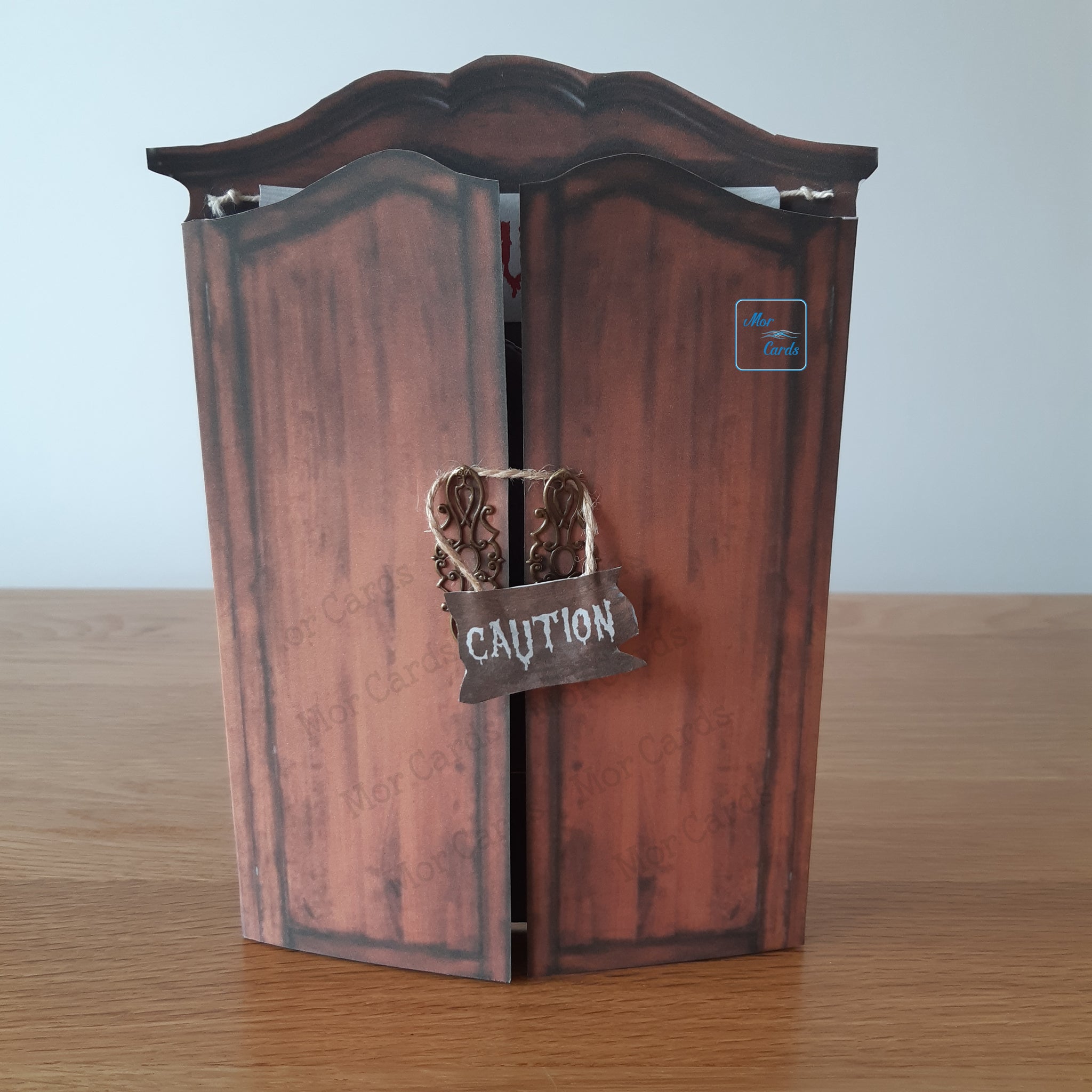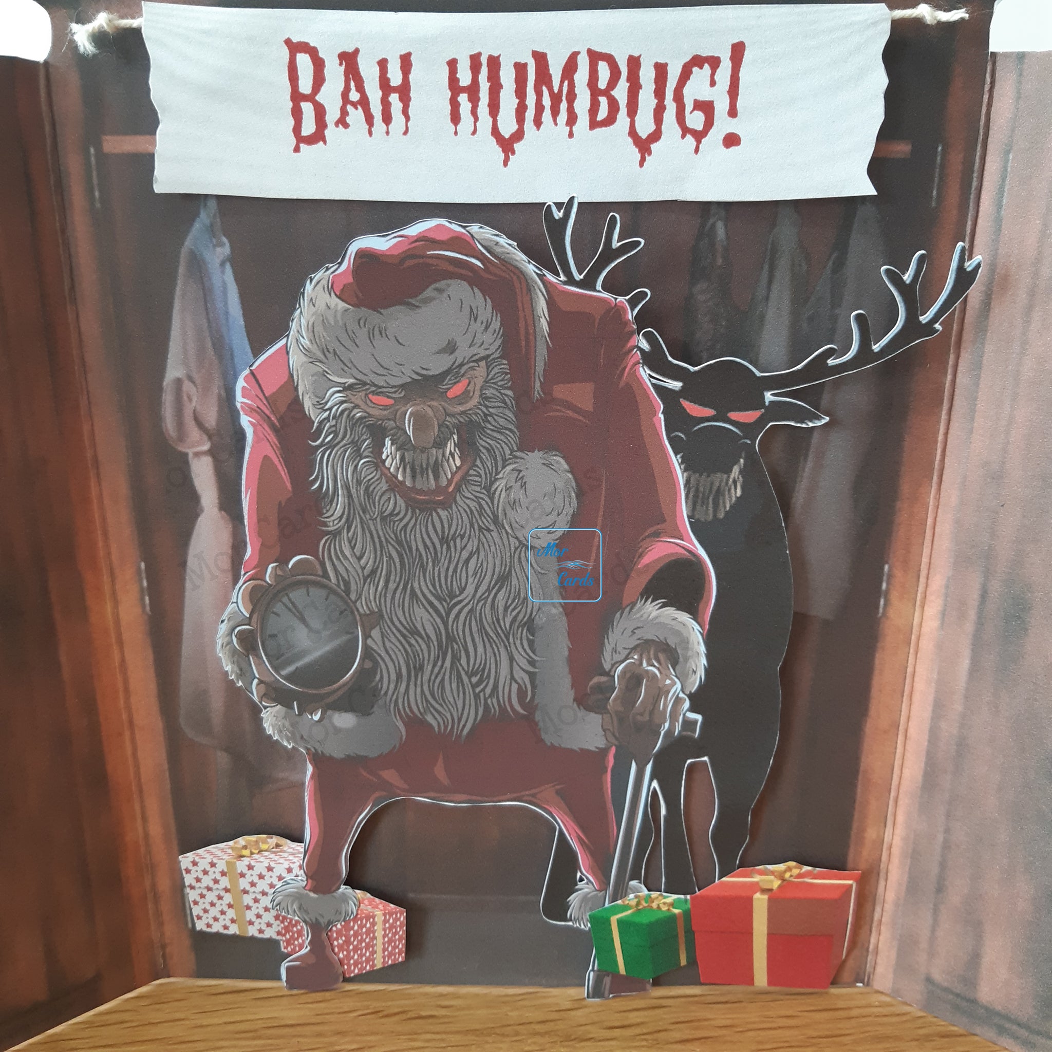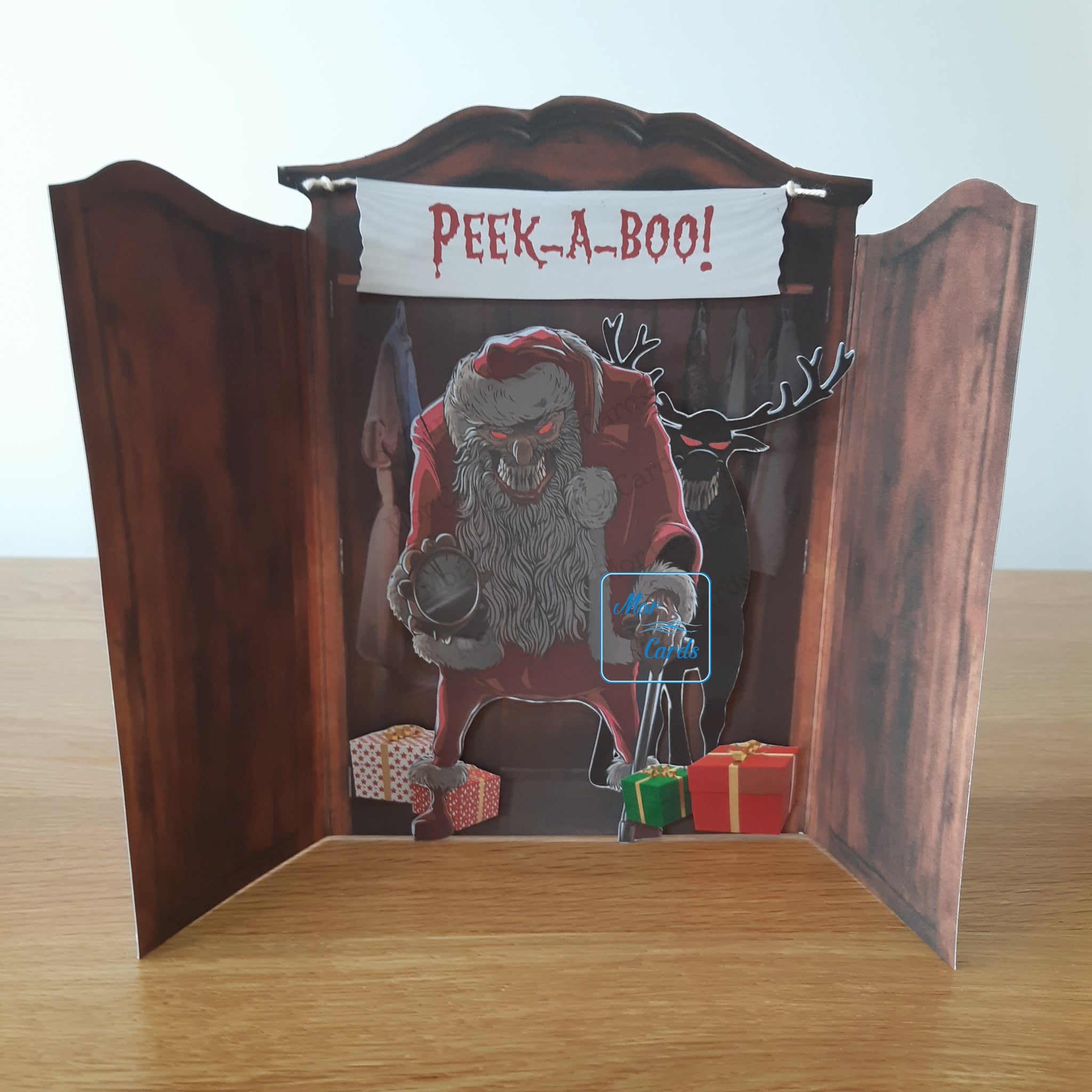Scary closet / wardrobe card with a bad, evil Santa hiding inside to surprise you. Perfect for any Gothic, alternative or horror fan for a fun surprise.