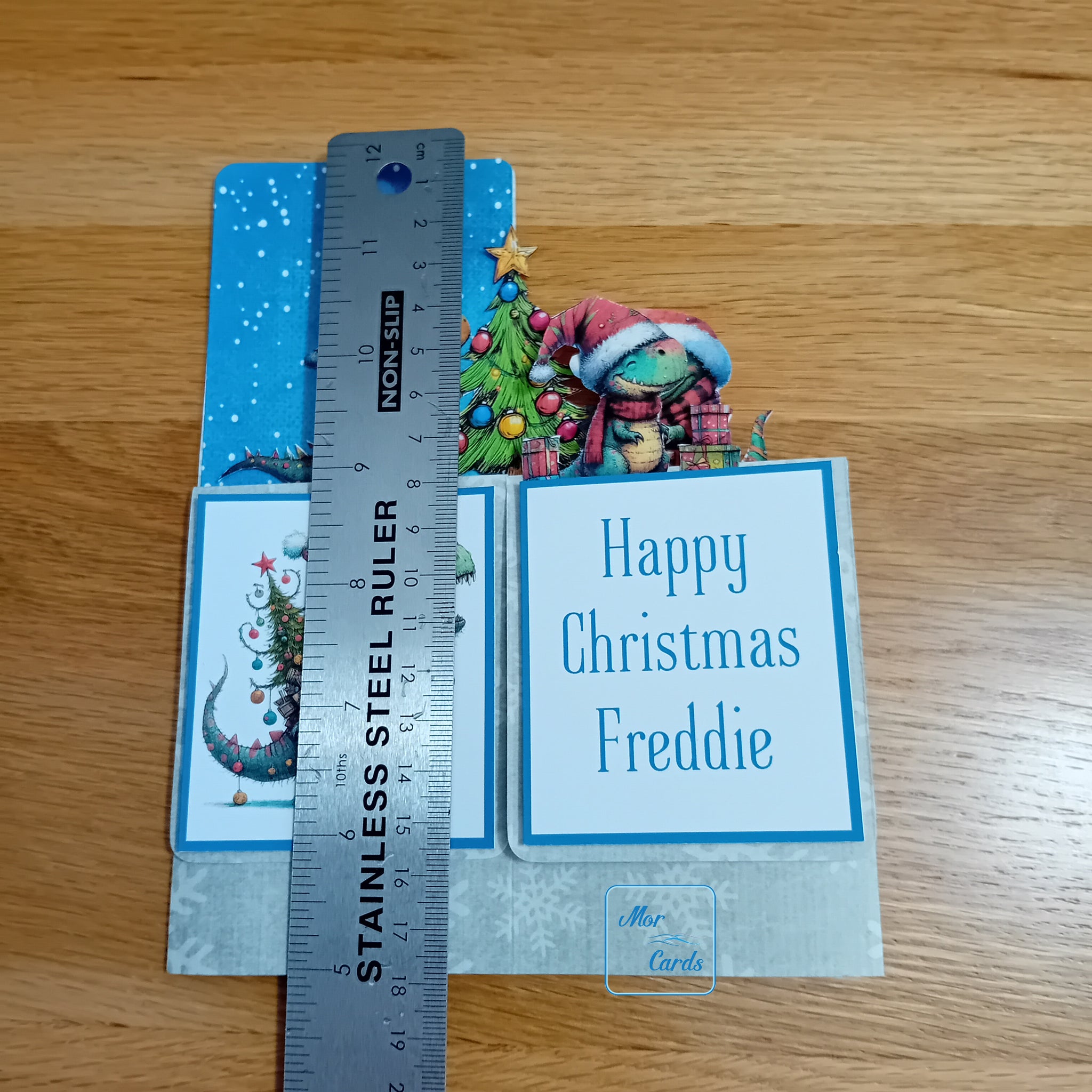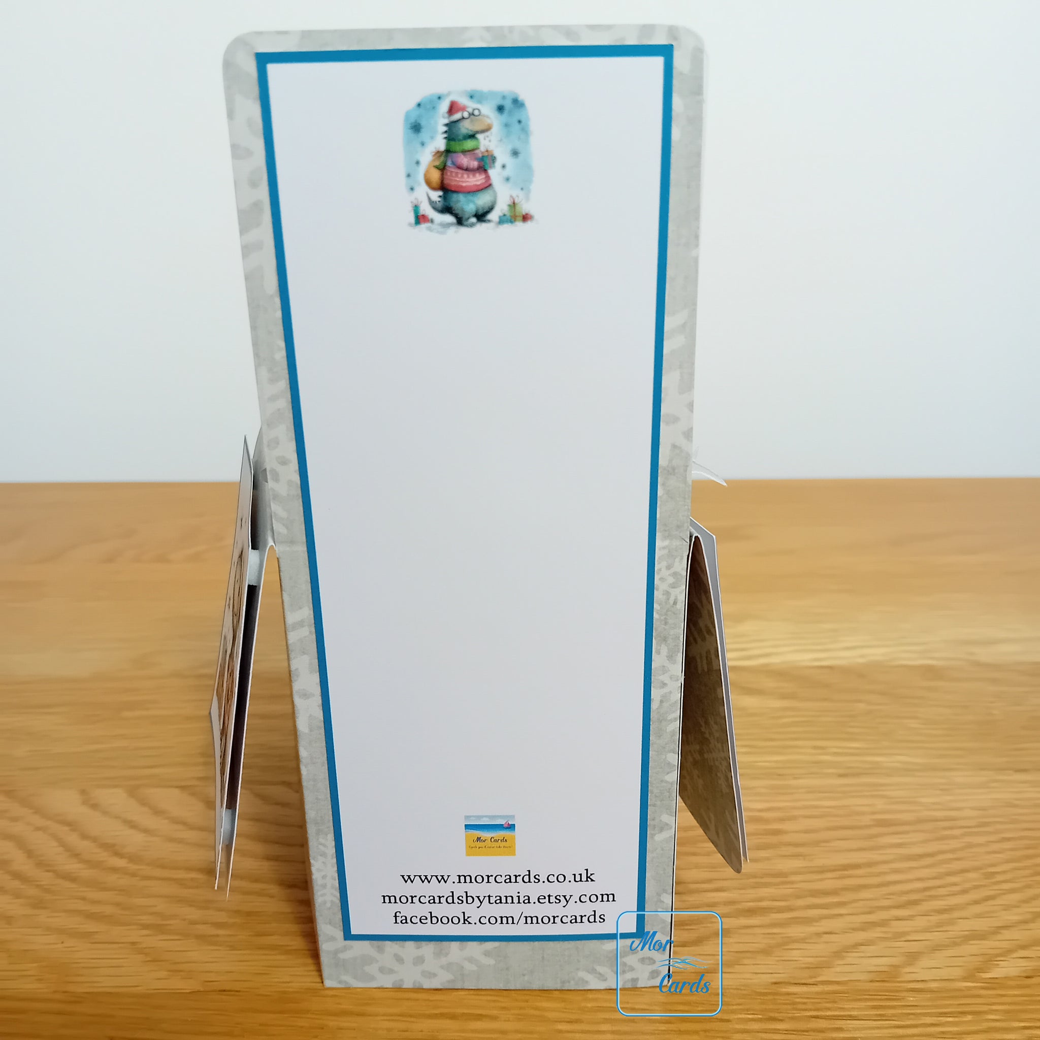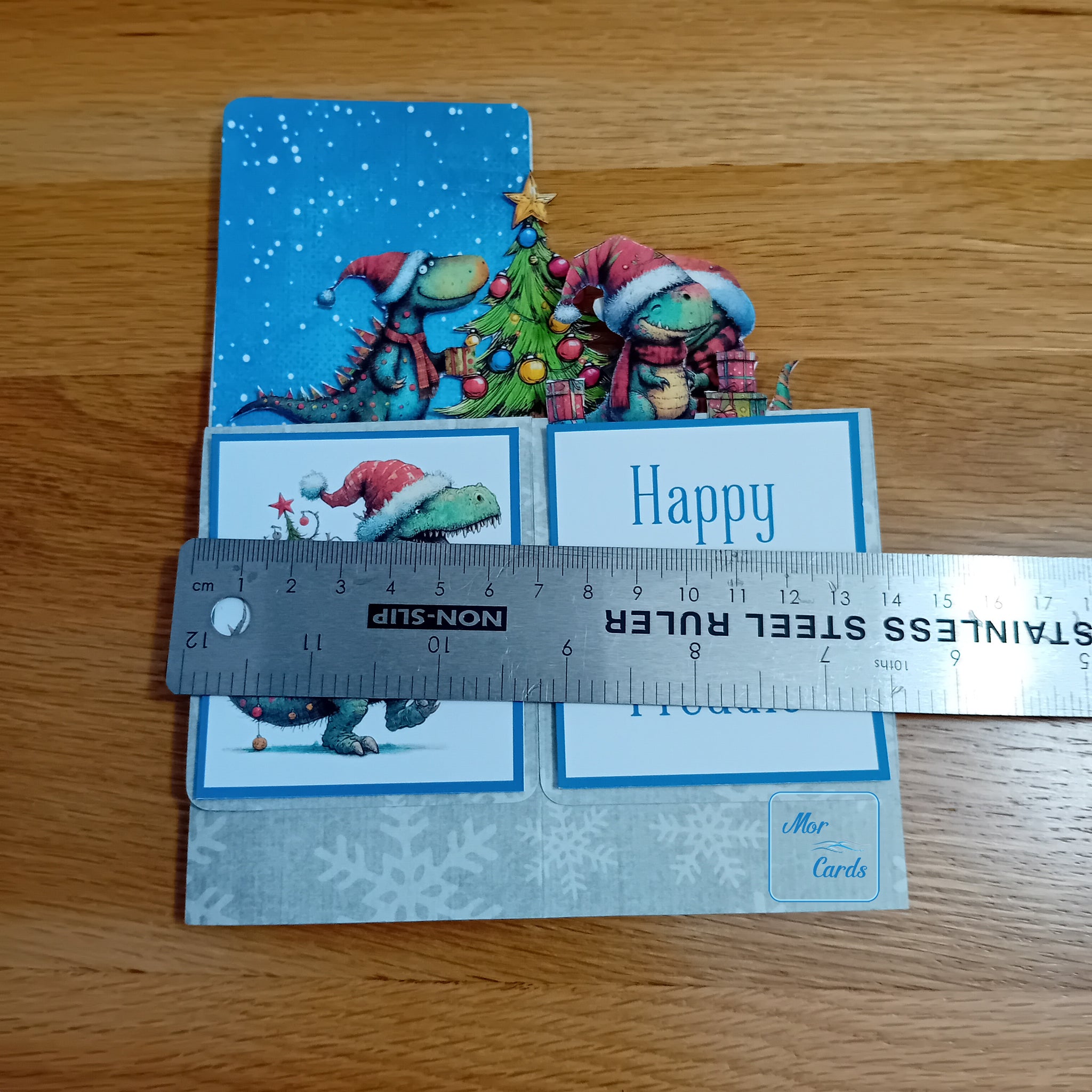 This is an alternative Christmas 'pop up’ box card with Christmas dinosaurs.