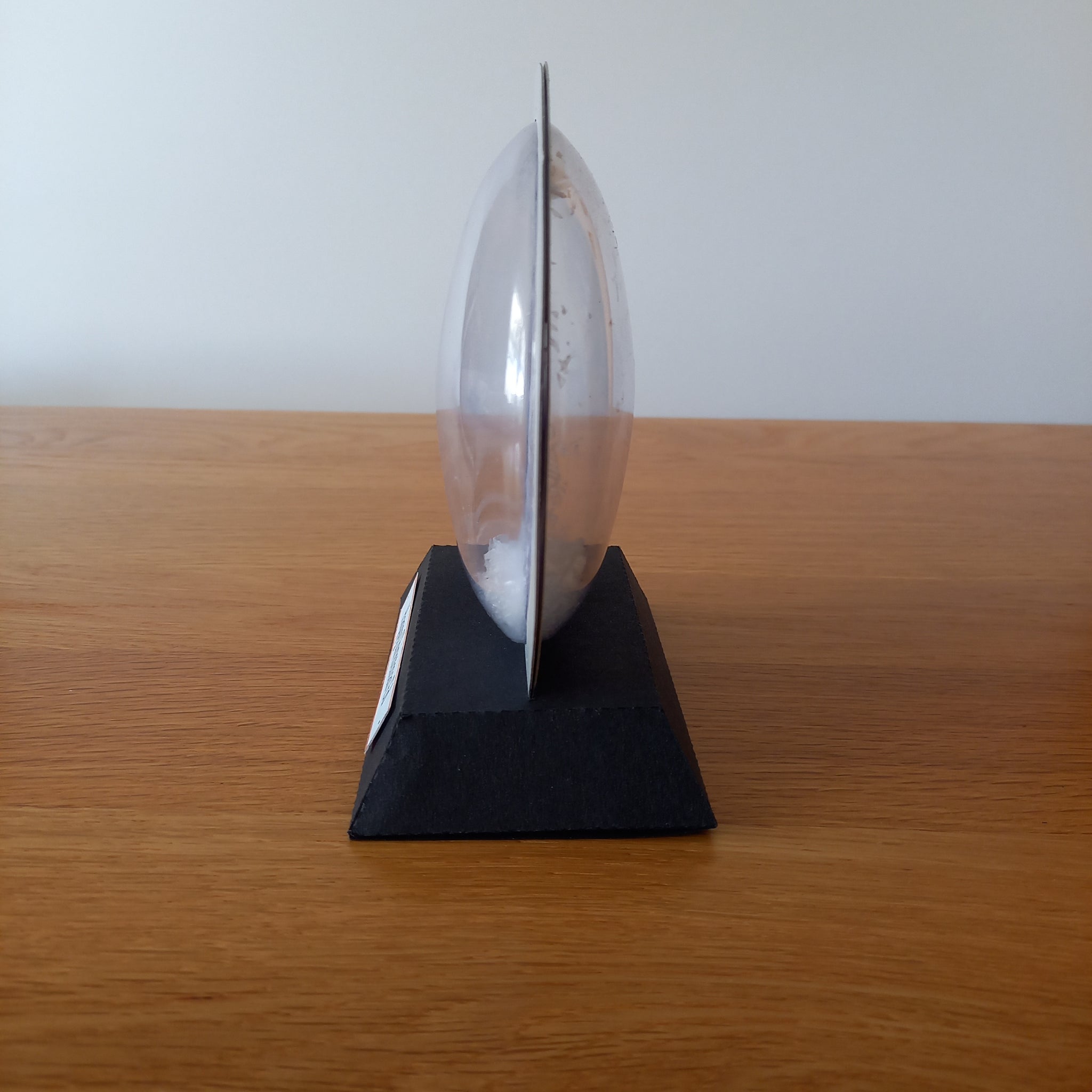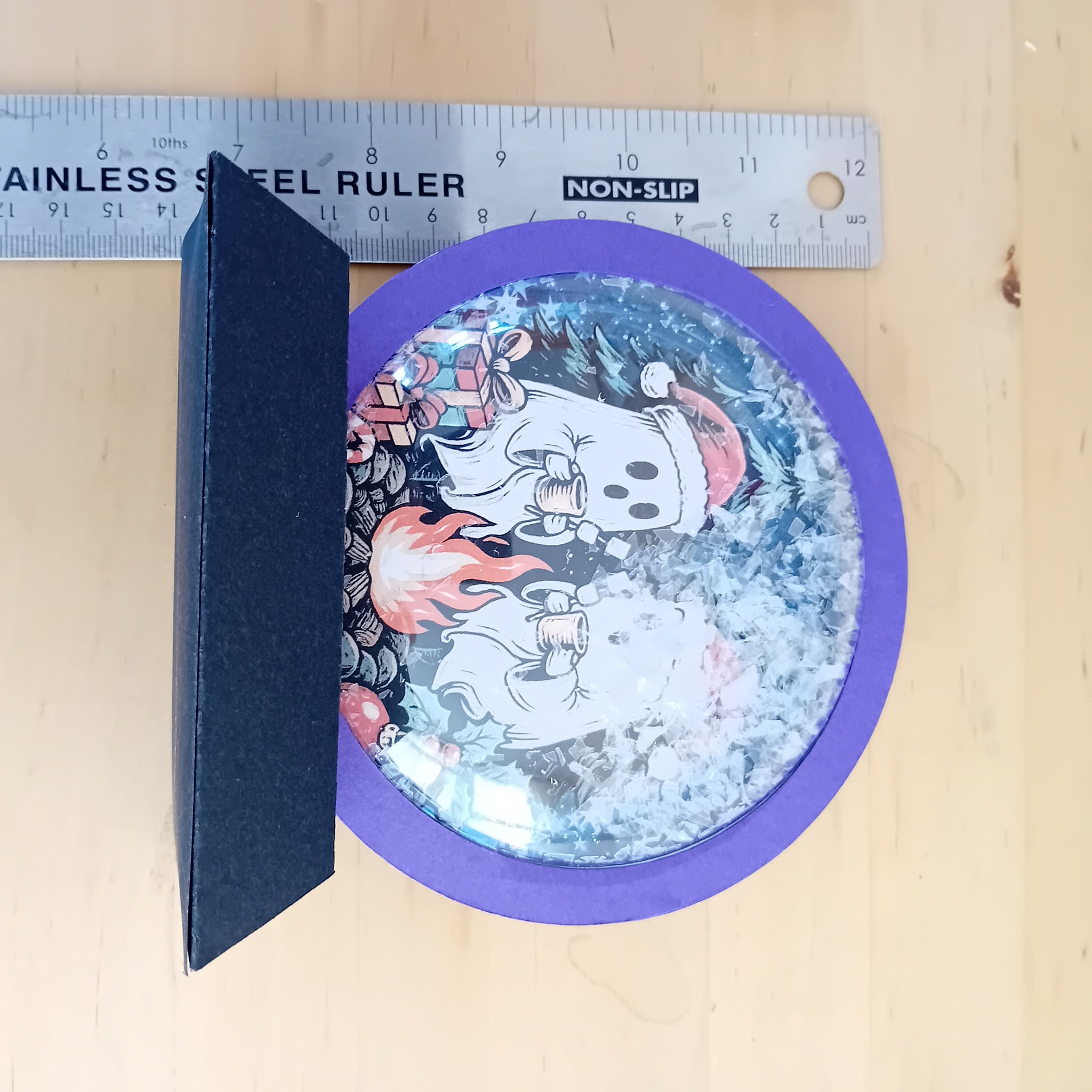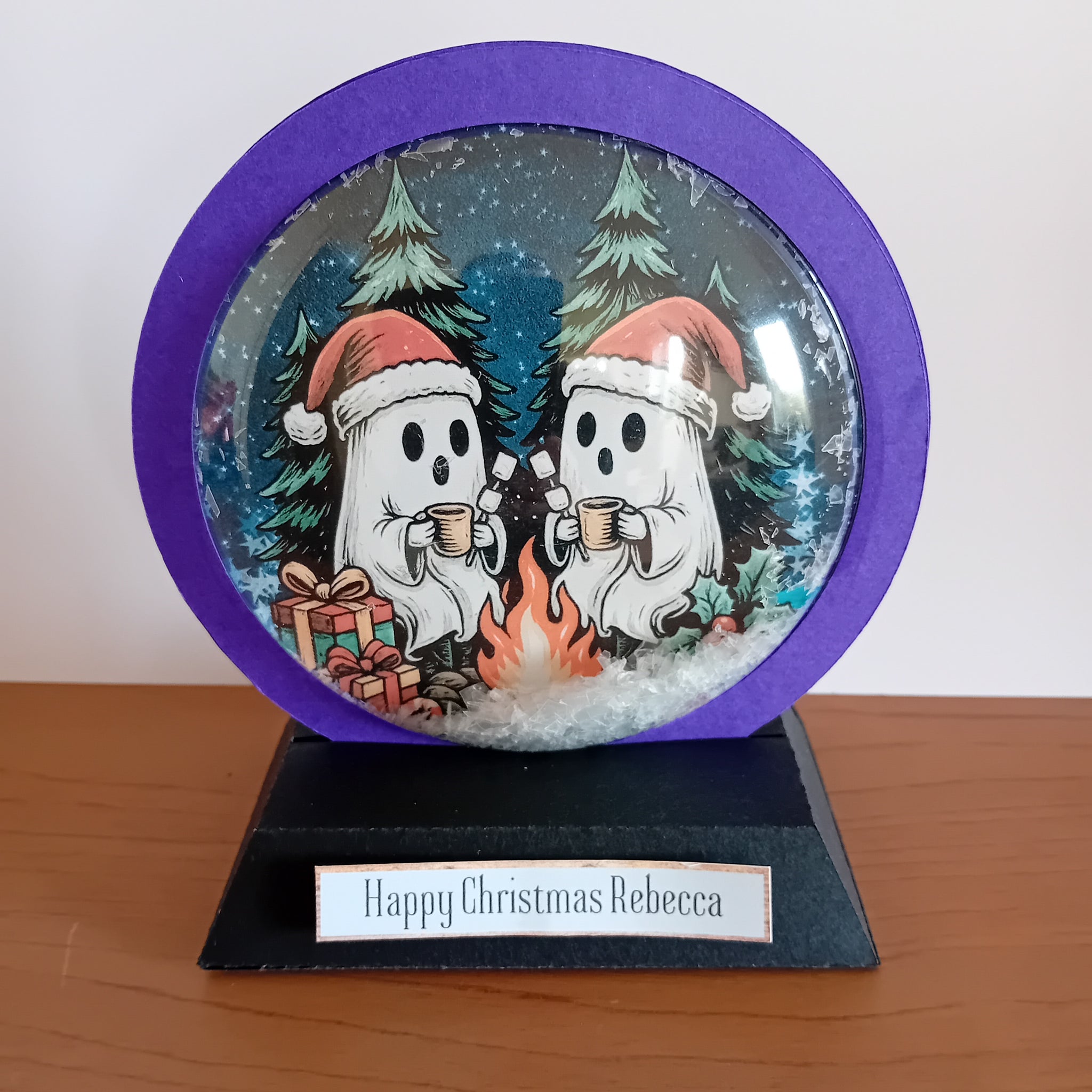 This is a personalised, handmade 3d ghost 'snowglobe' card made of card and plastic. It does not fold flat, it is NOT a toy, it's a card keepsake so not suitable for children!