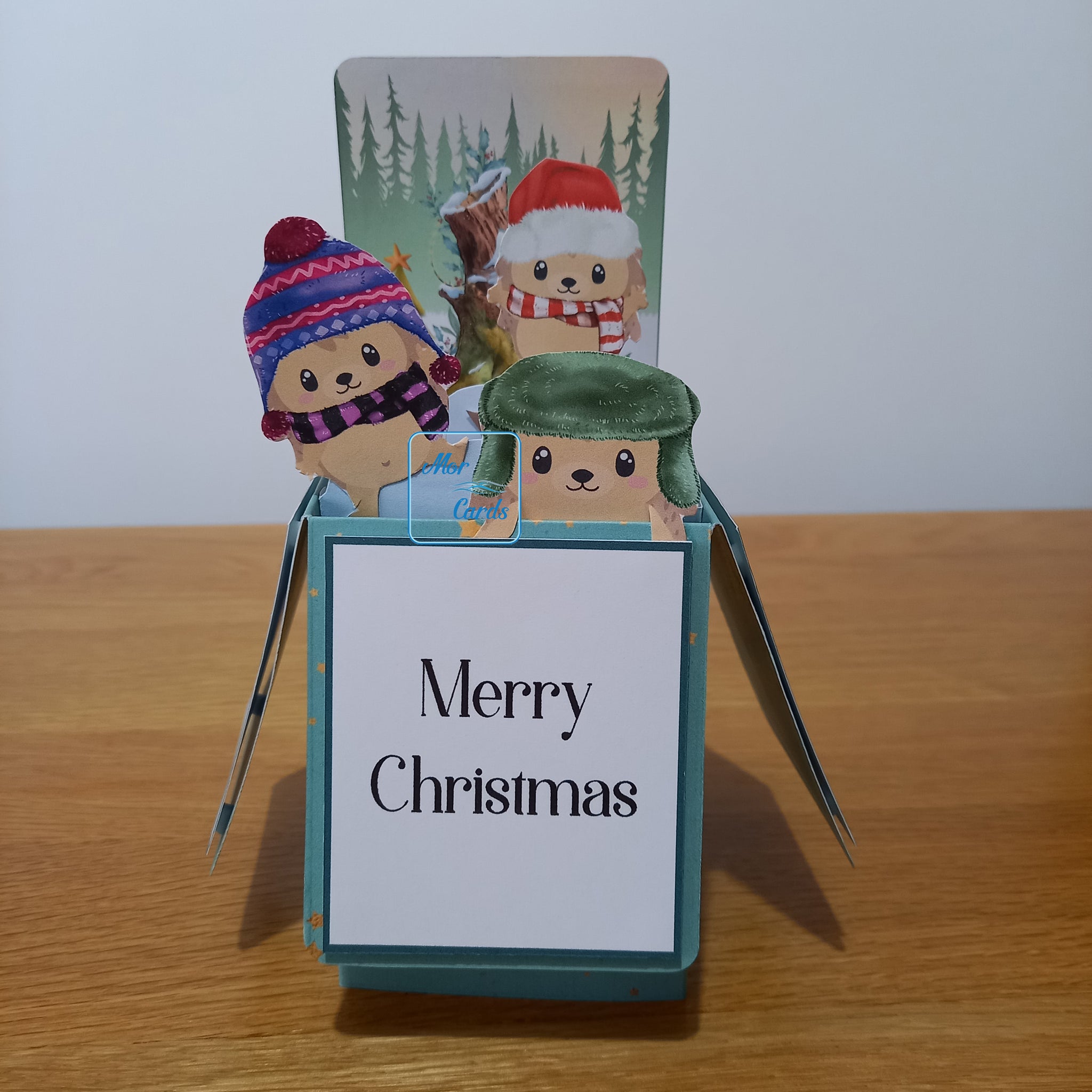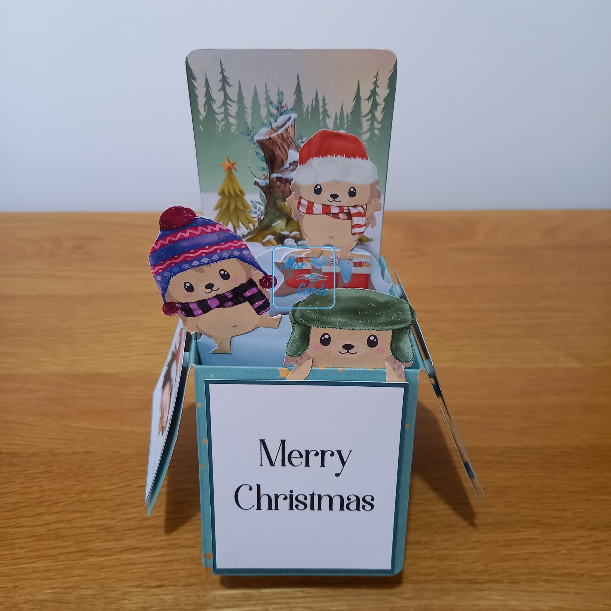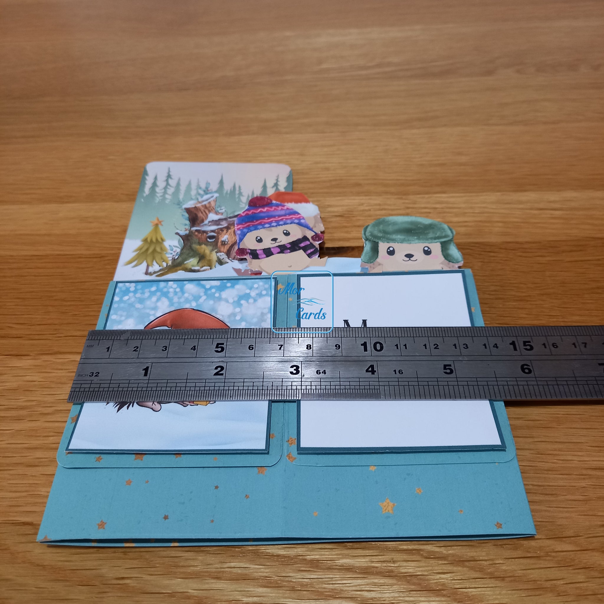 This is a ‘pop up’ box card with Christmas hedgehogs