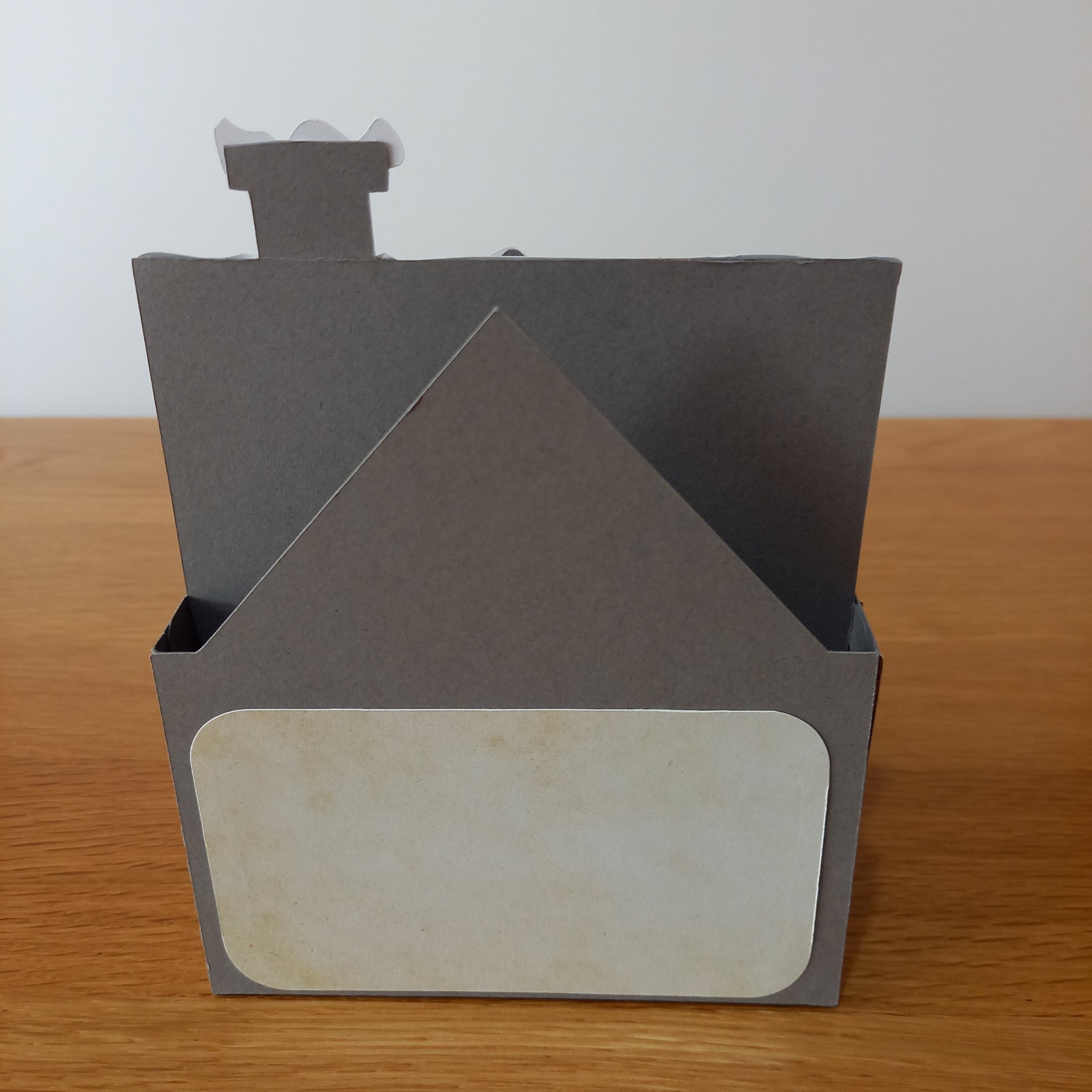 The box card folds flat for posting but easily opens out to look like a box. The card is approx 19 x 14cm when flat and stands approx 14cm when open.