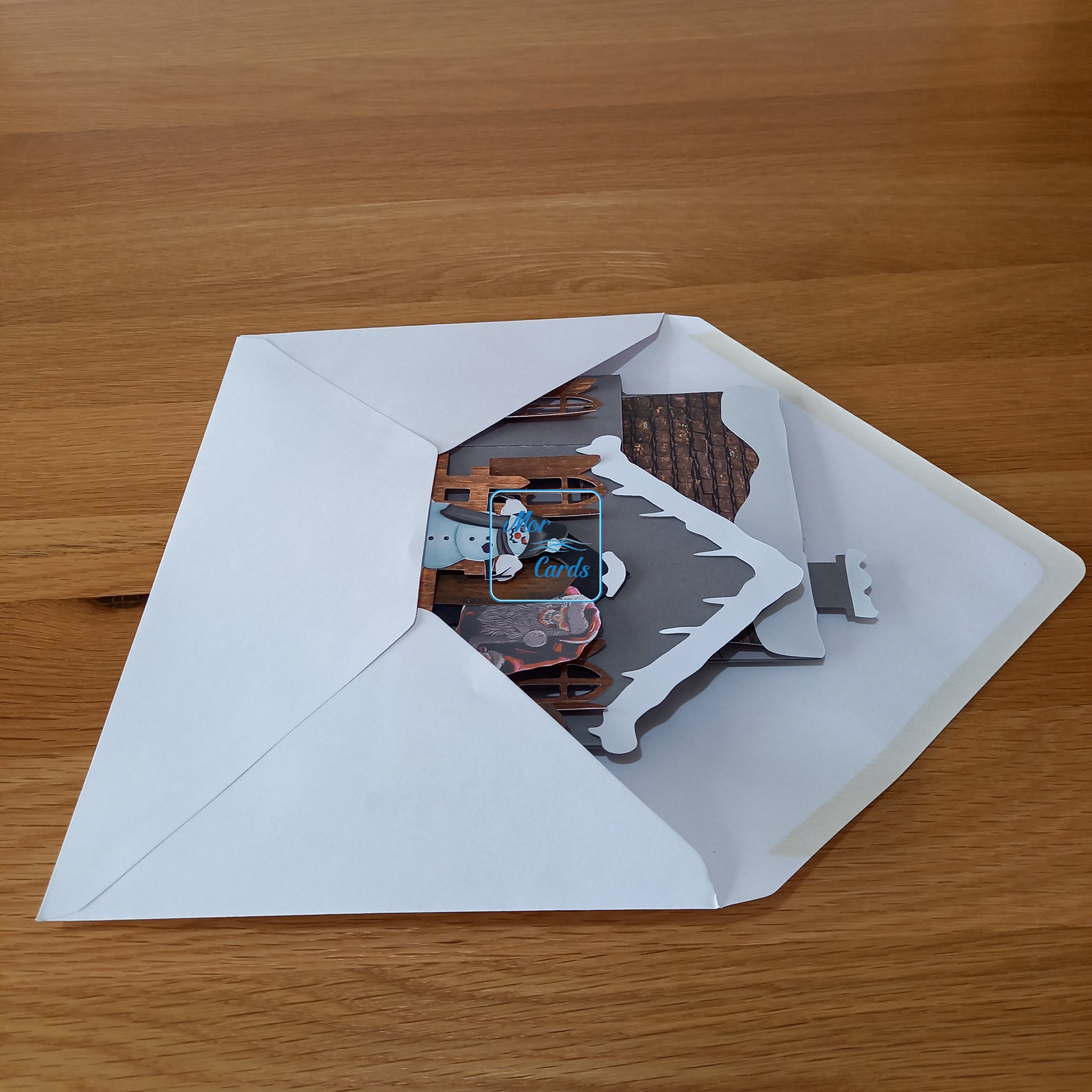 The card comes with an envelope and is packed in a cellophane bag. I always post in a hard backed envelope and send Royal Mail tracked 48 or International tracked.