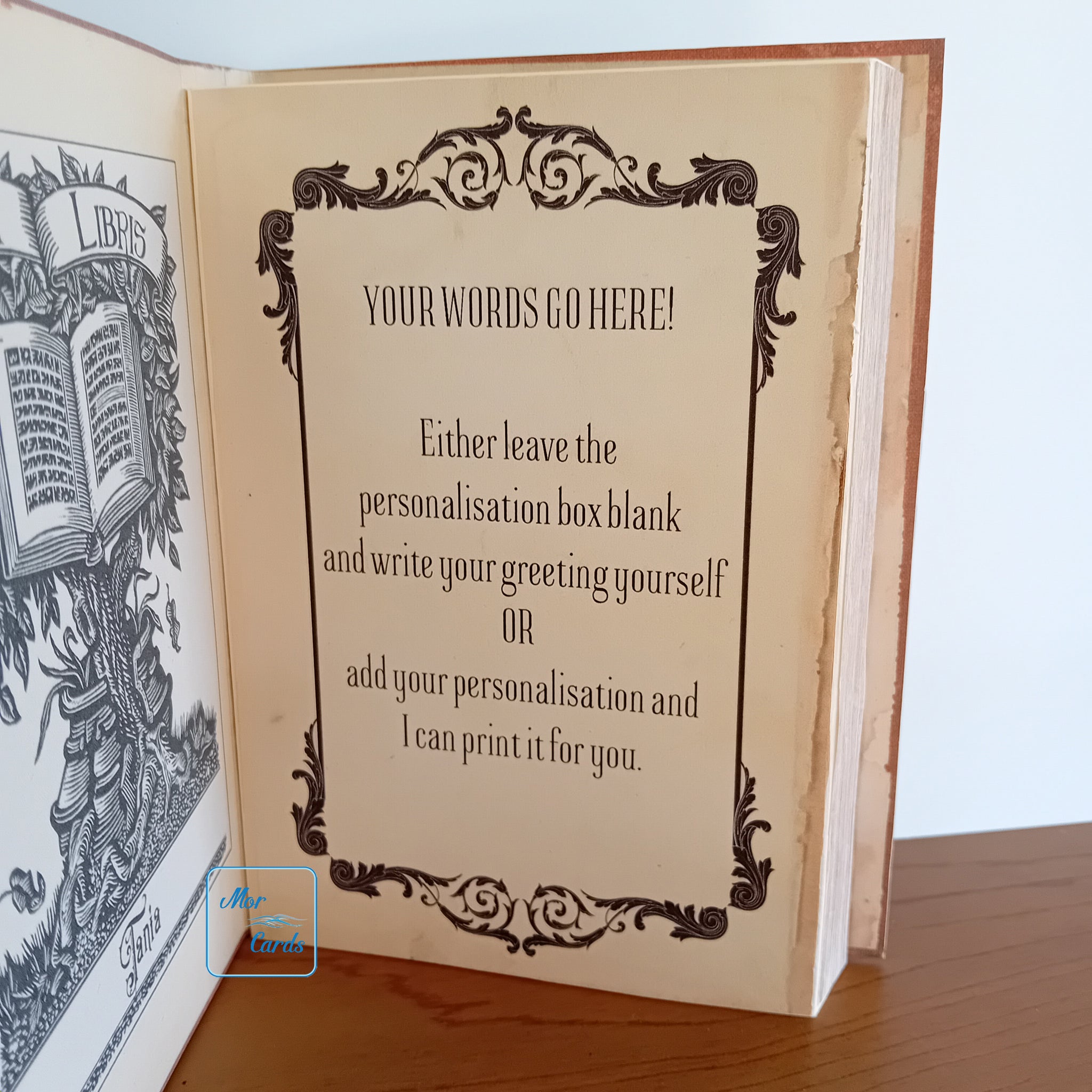 The card can be personalised for you with a name on the front and there is a huge personalisation panel inside. You can either write here yourself or you can add your wording to the personalisation box below and I can print it for you. Watermarks will not appear on the actual card.