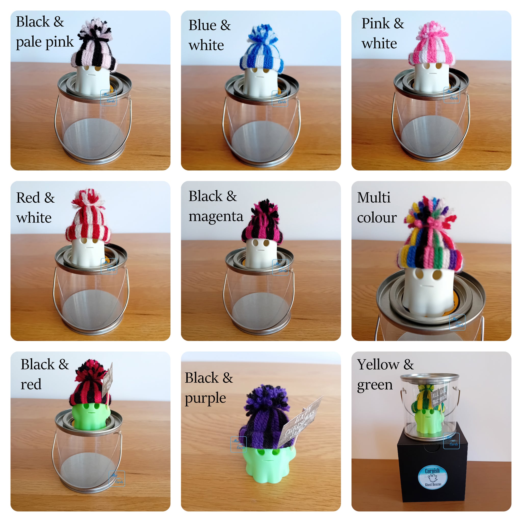 This is a completely new item from me! Cornish Ghost Rescue (aka Tania!) has rescued scared little ghosts and they are looking for a brave new home to haunt and someone to love them. They come secured in lidded pots (please don't try to remove them) in a presentation box and with their adoption paper. Choose your type of ghost, hat colour and if you'd like a personalised sign or not.