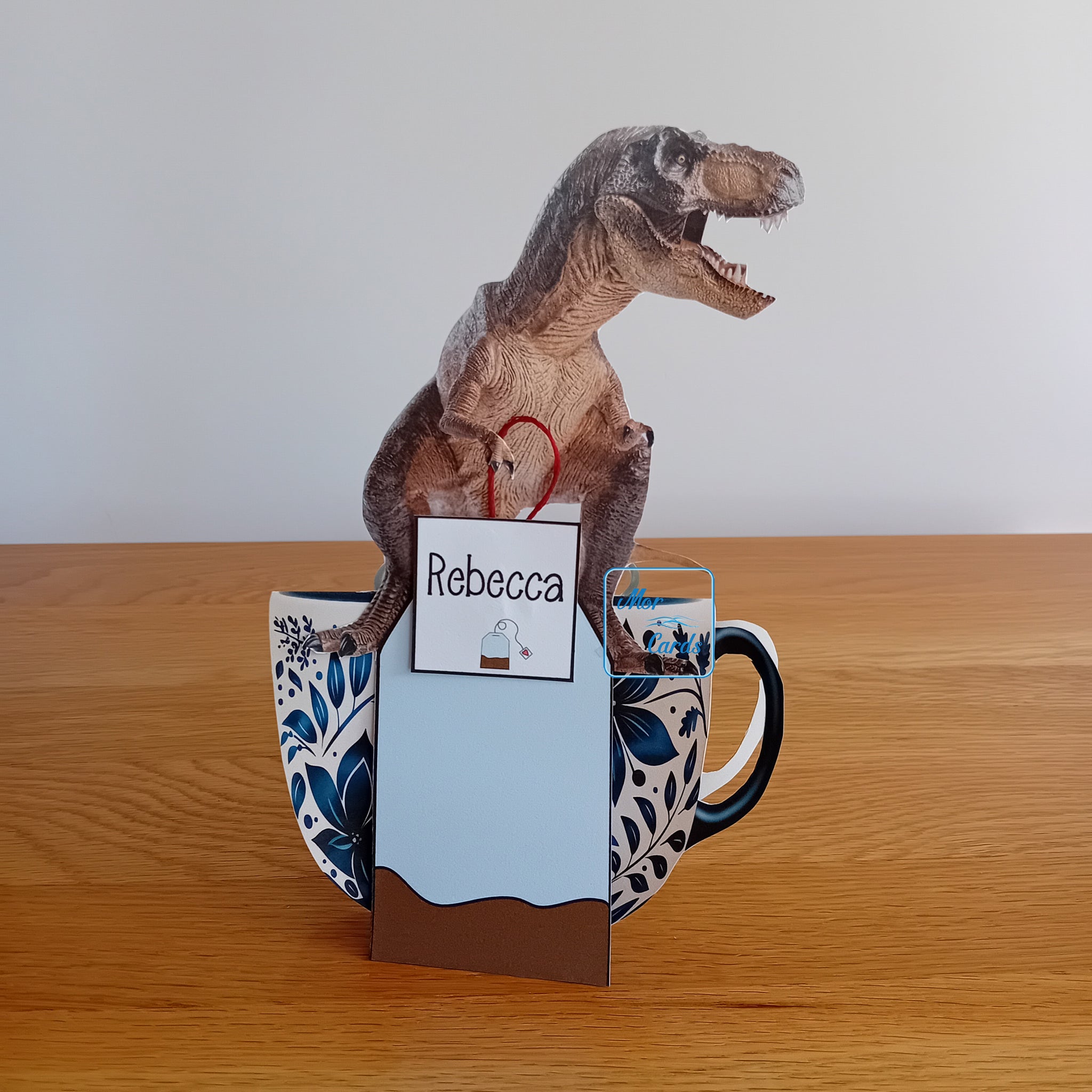 This is an unusual card where the Tea Rex (brand new species of tiny dinosaur!) comes out of a teacups and you can write your own greeting on the teabag notecard he's holding. It's ideal for any occasion including congratulations, birthday or even a party invitation.