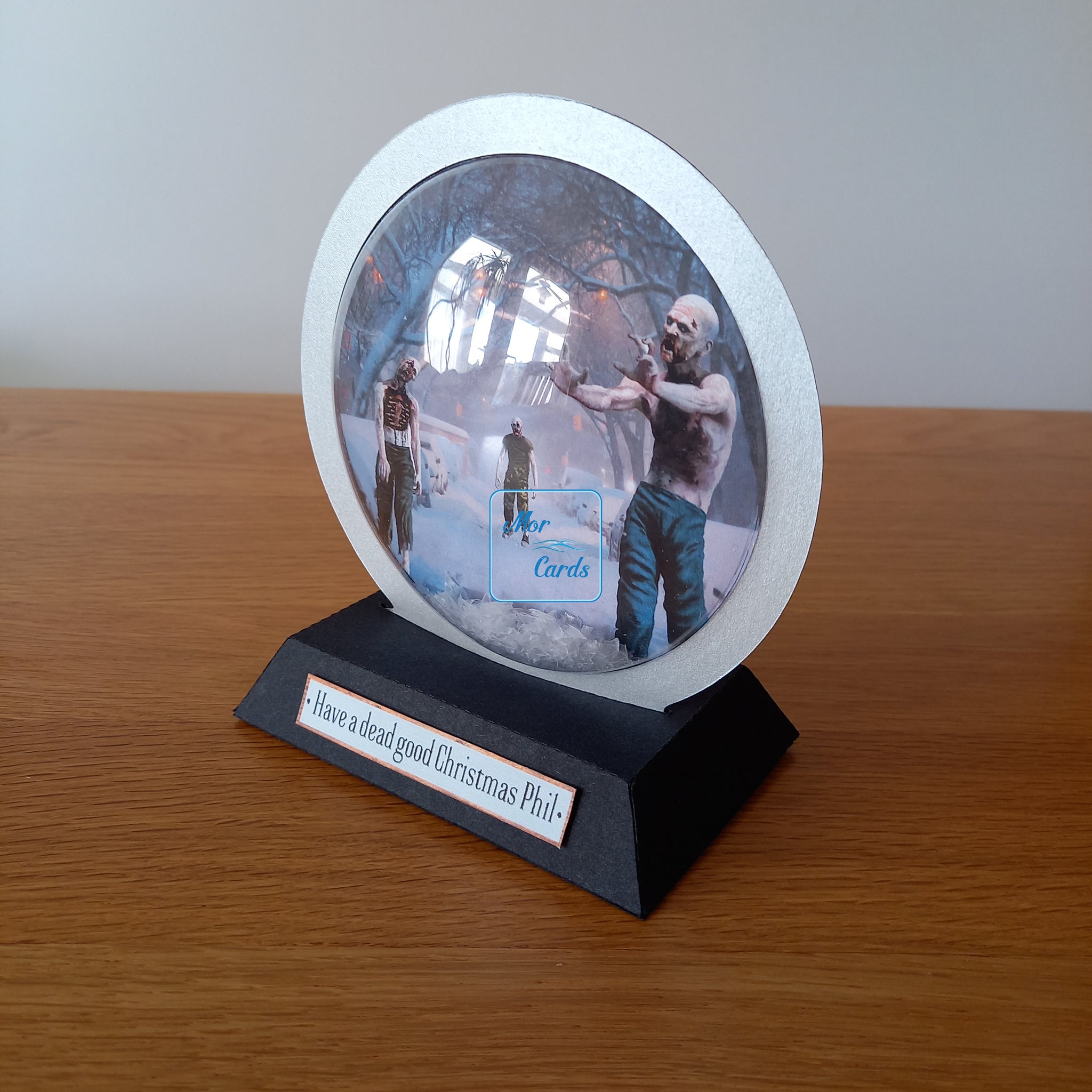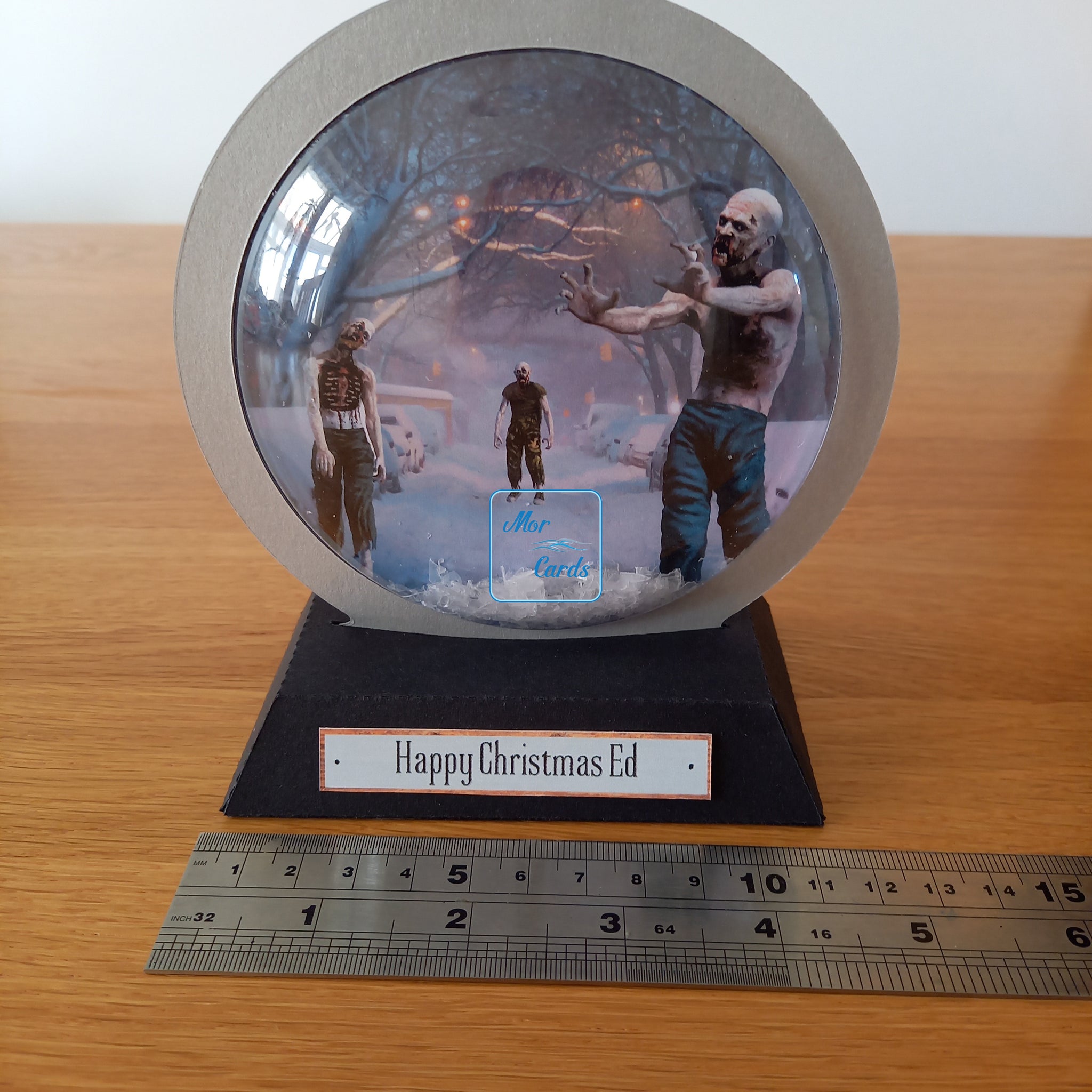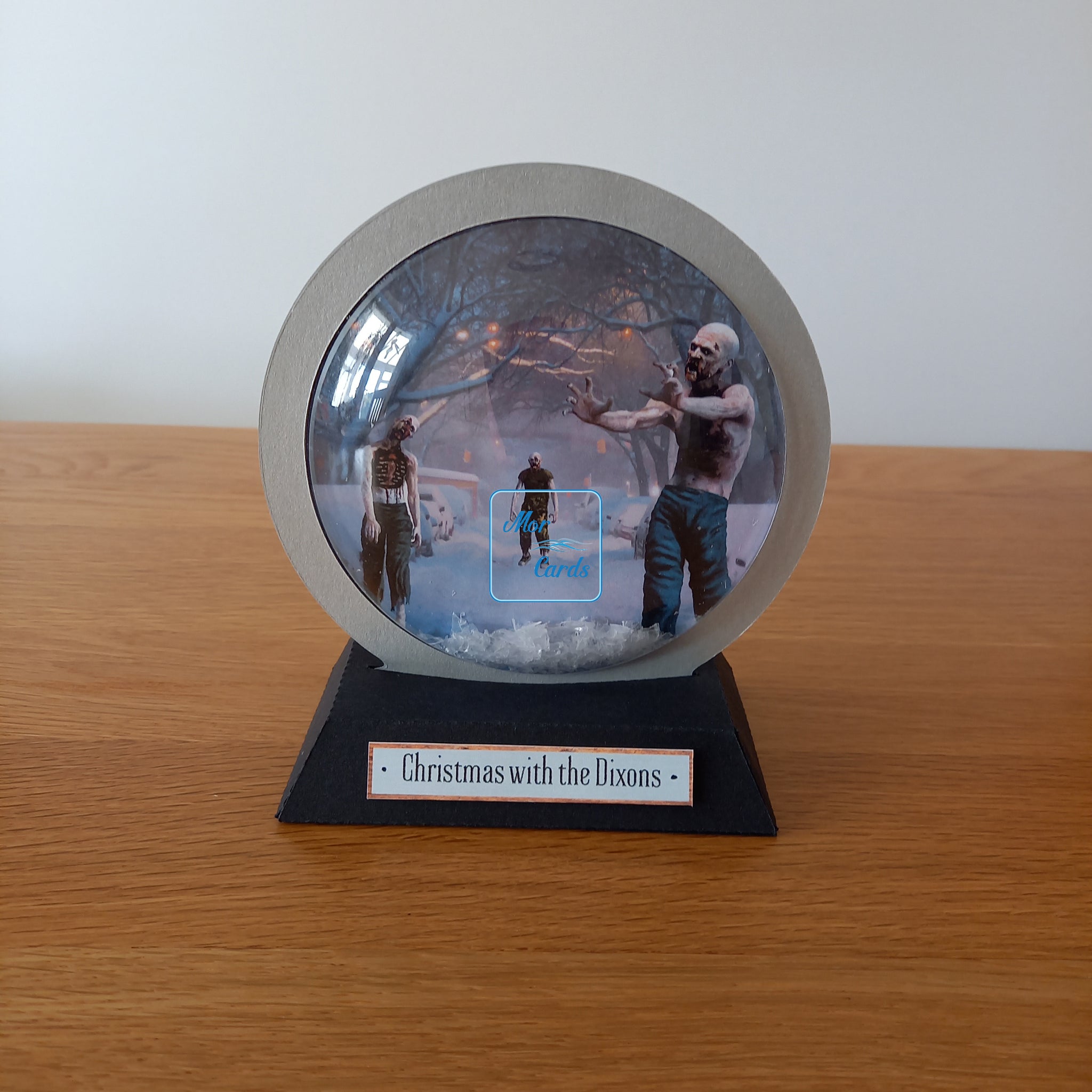 Inside the plastic domes are zombies and 'snow'. The globe base and reverse is personalised for you with your choice of wording. Please complete the personalisation box with your details.