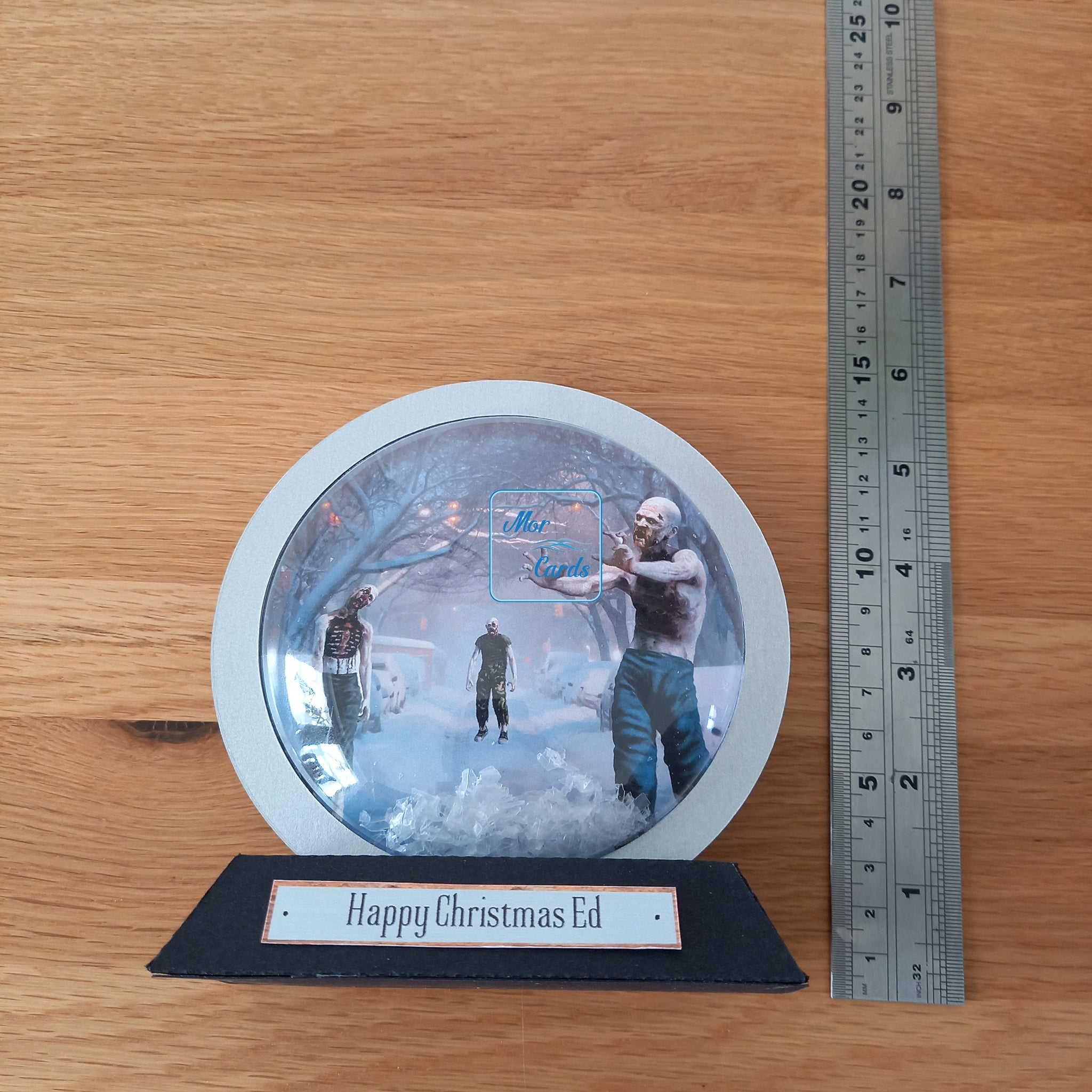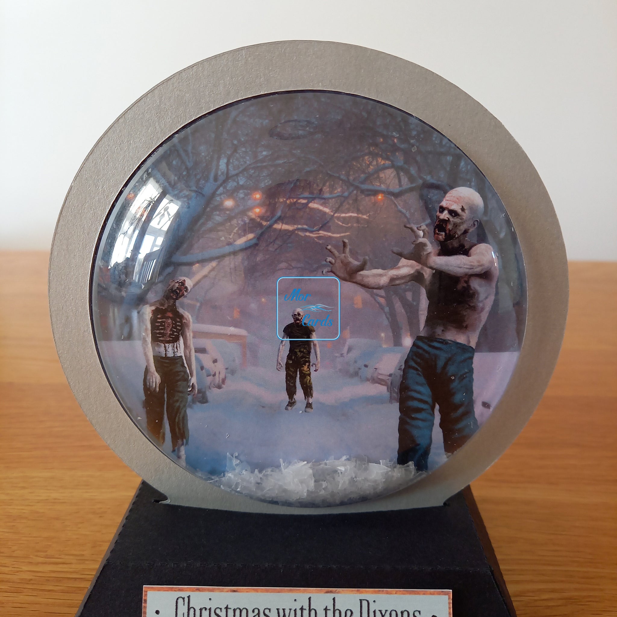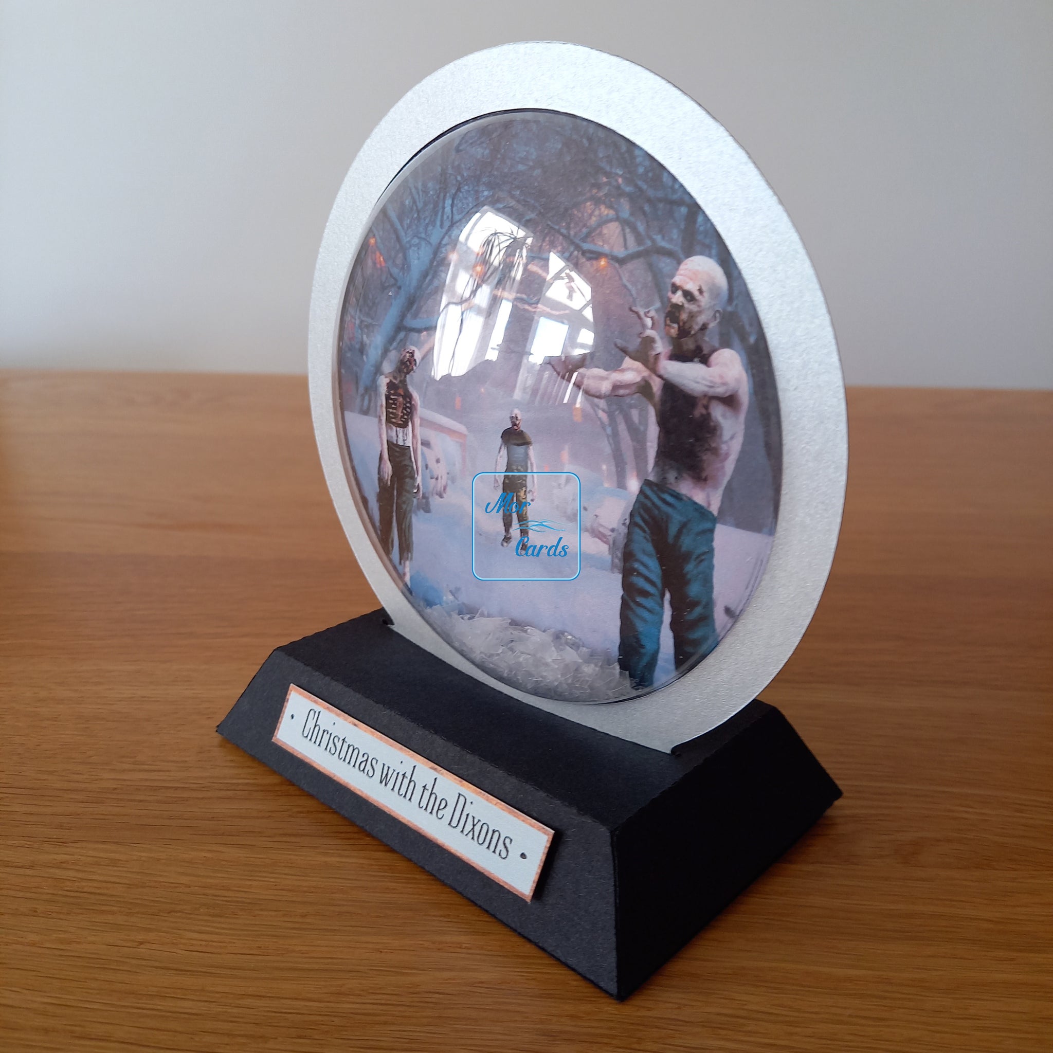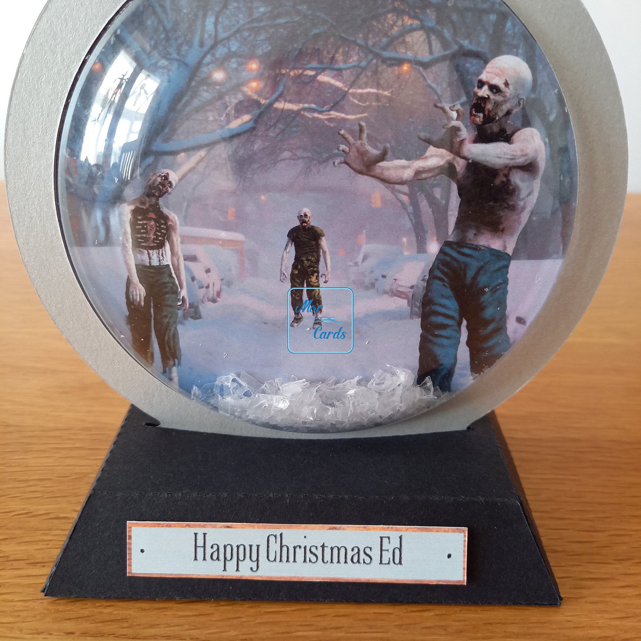 Inside the plastic domes are zombies and 'snow'. The globe base and reverse is personalised for you with your choice of wording. Please complete the personalisation box with your details.