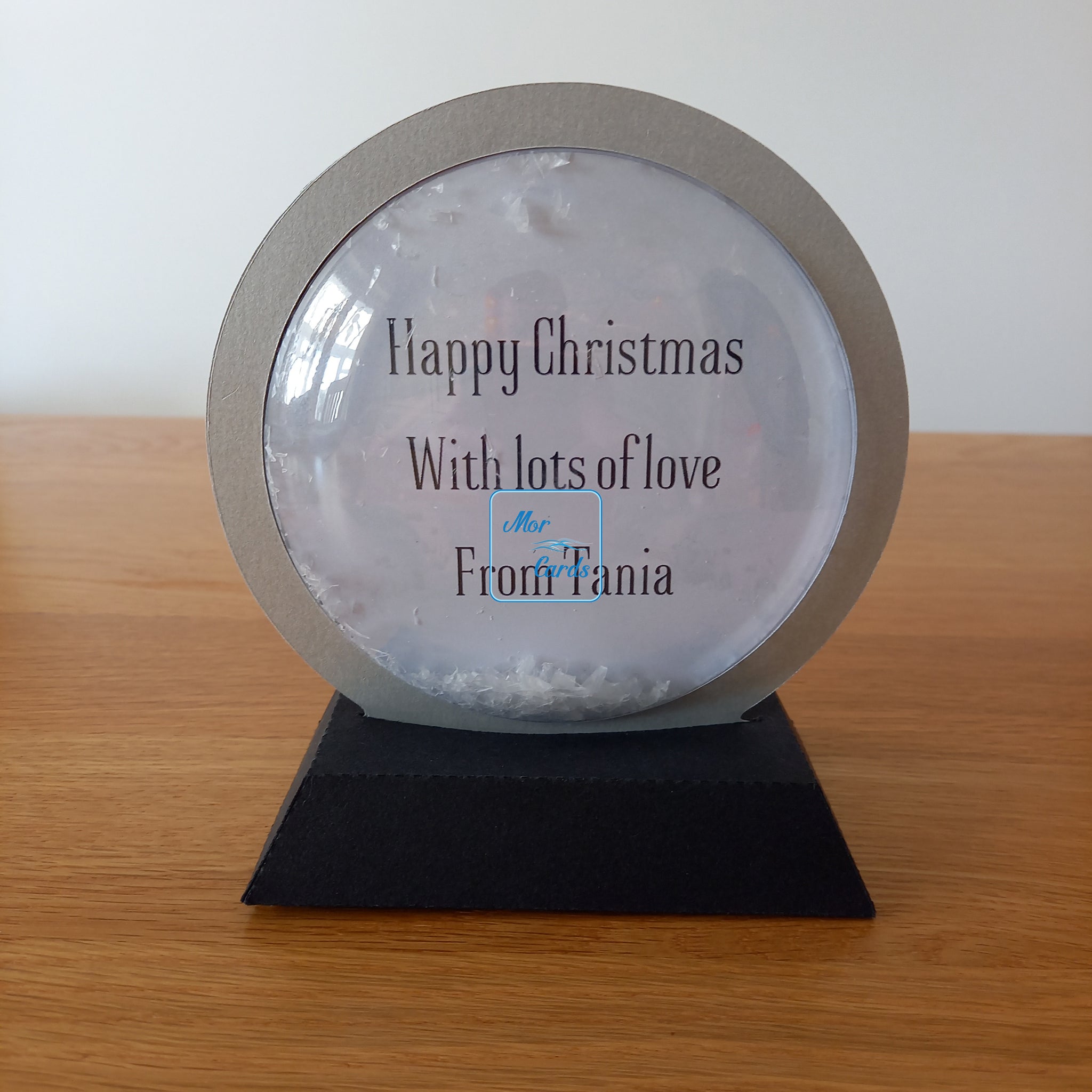 This is a personalised, handmade 3d 'snowglobe' card made of card and plastic. It does not fold flat, It is NOT a toy, it's a card keepsake so not suitable for children!